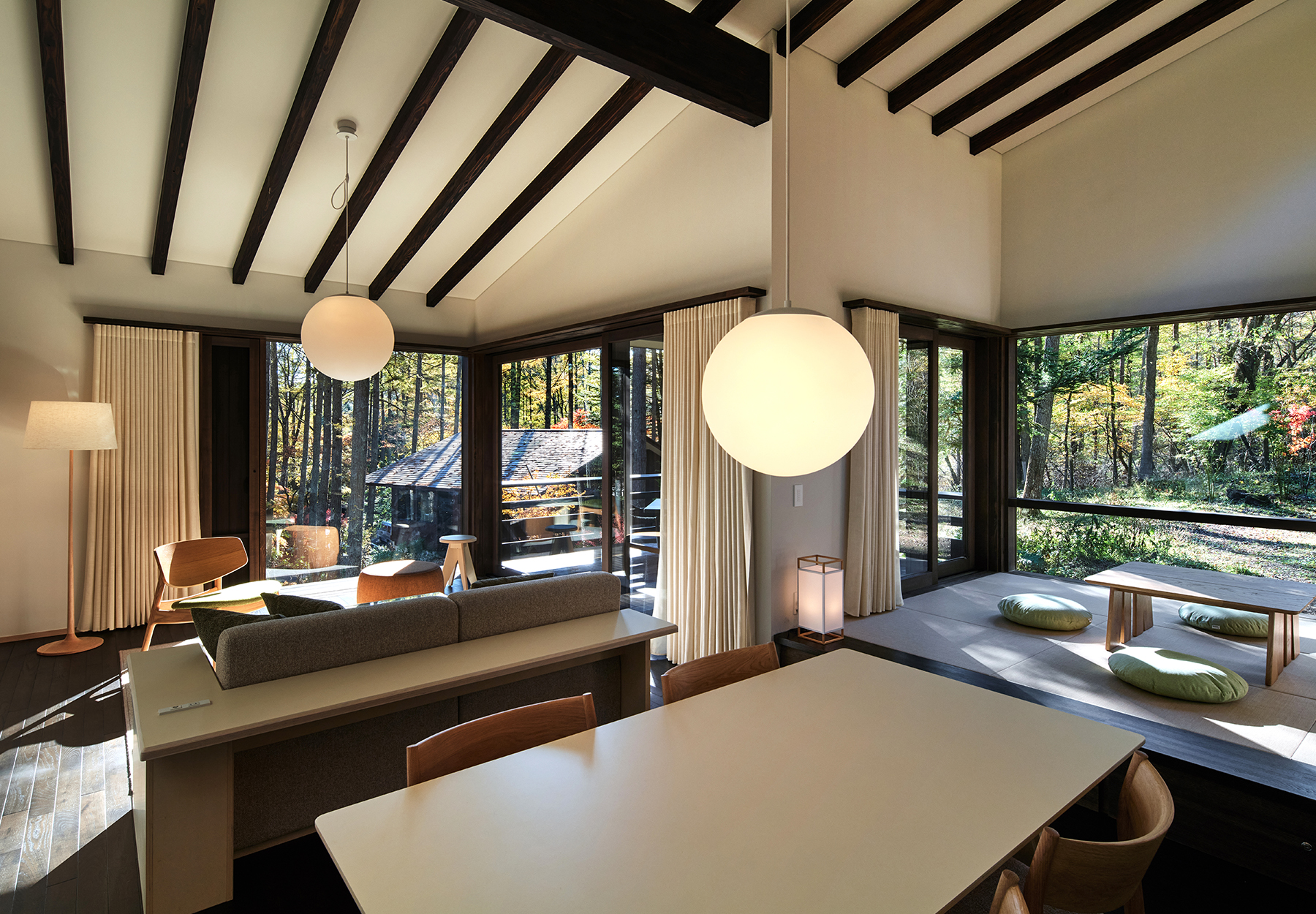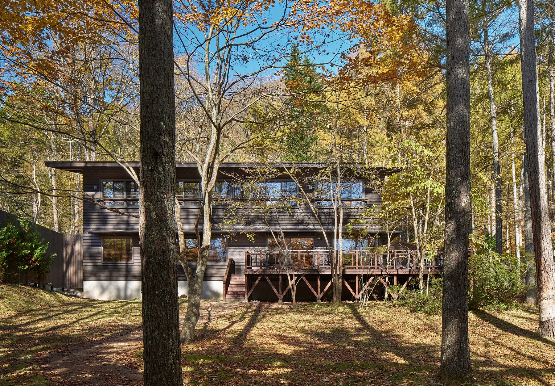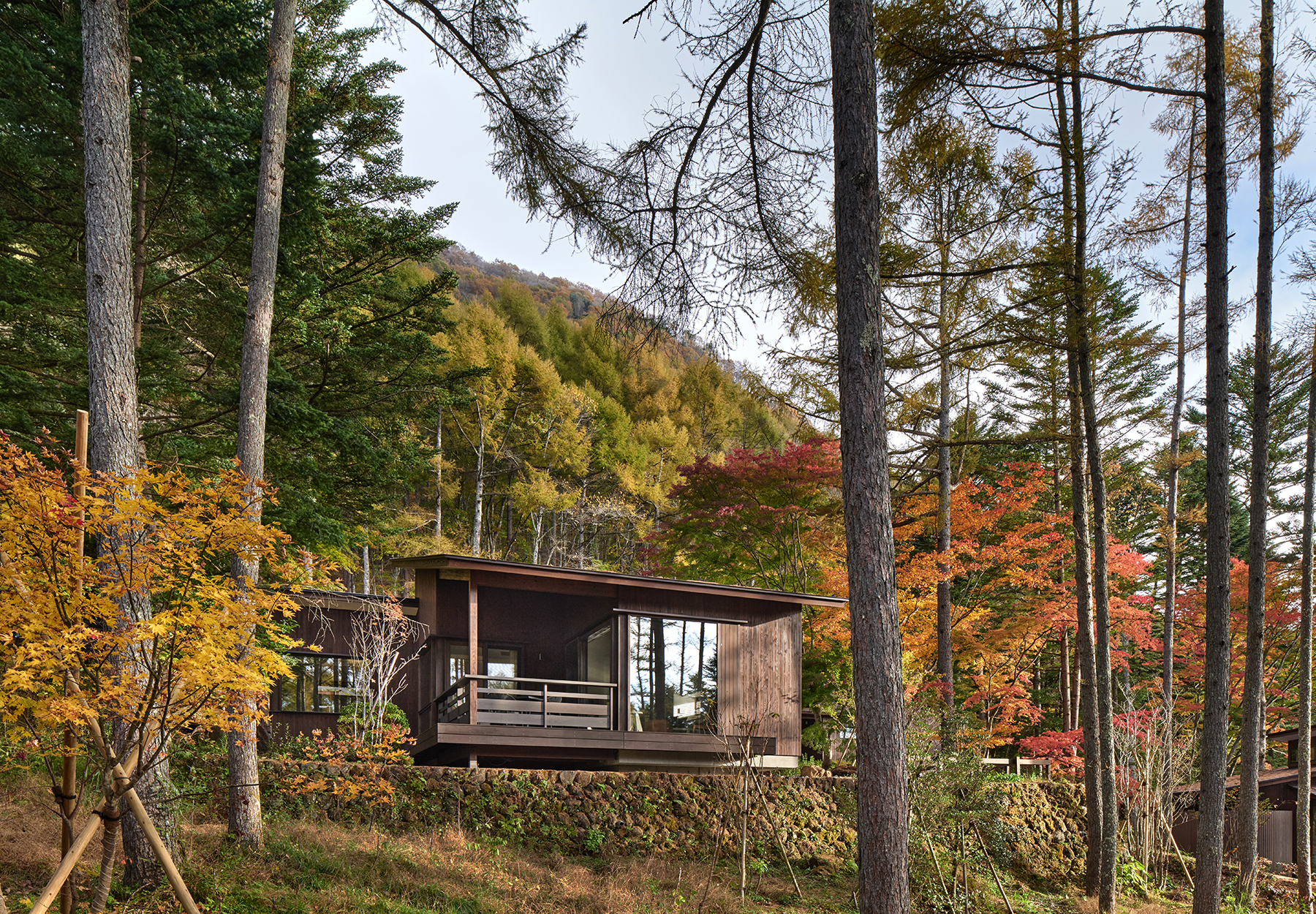 軽井沢・泉の里と呼ばれる別荘地に位置する鹿島建設社用施設のリニューアル及びヴィラ14棟の新築計画。社員の多様なワークライフスタイルの実現を目指した保養施設となる。