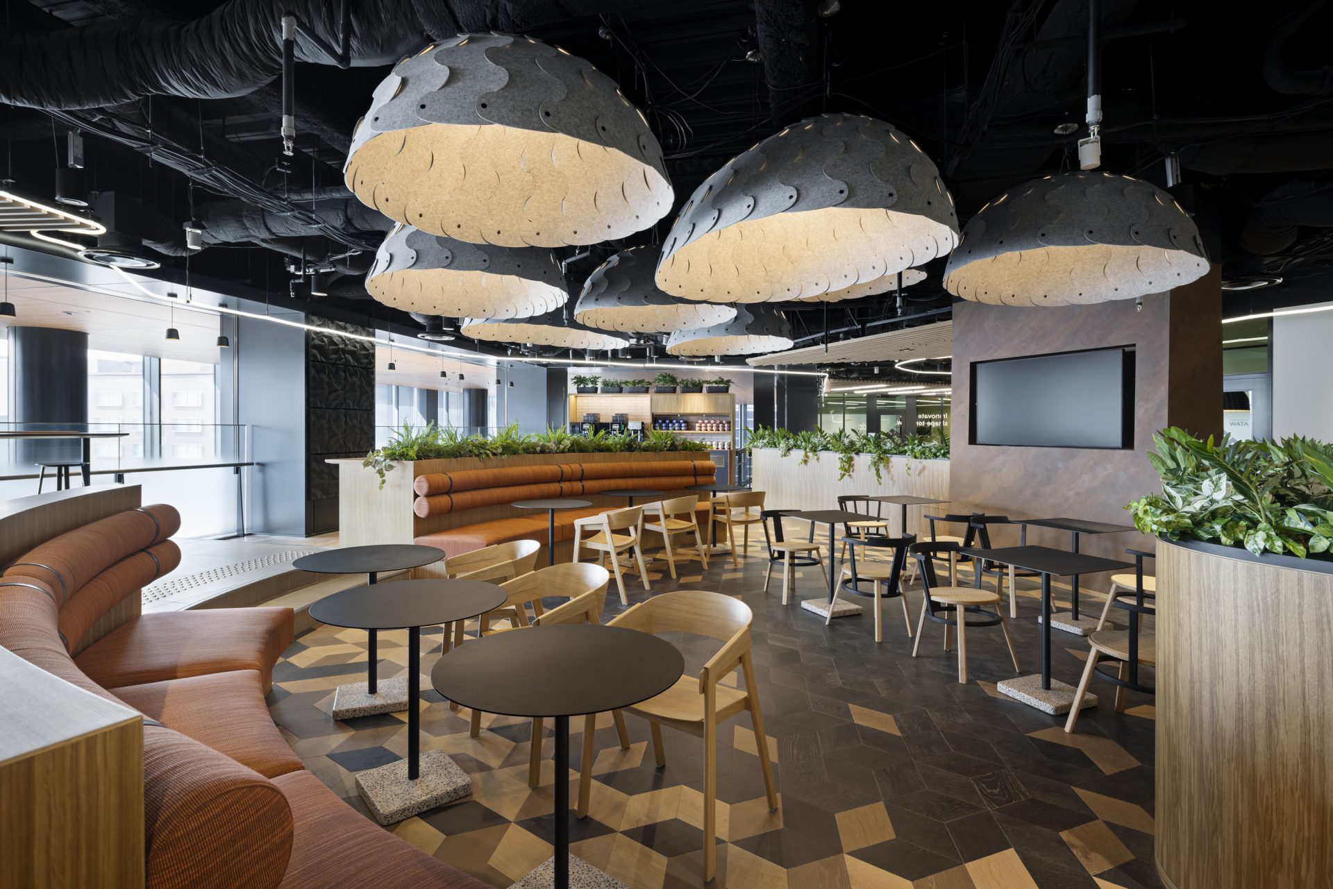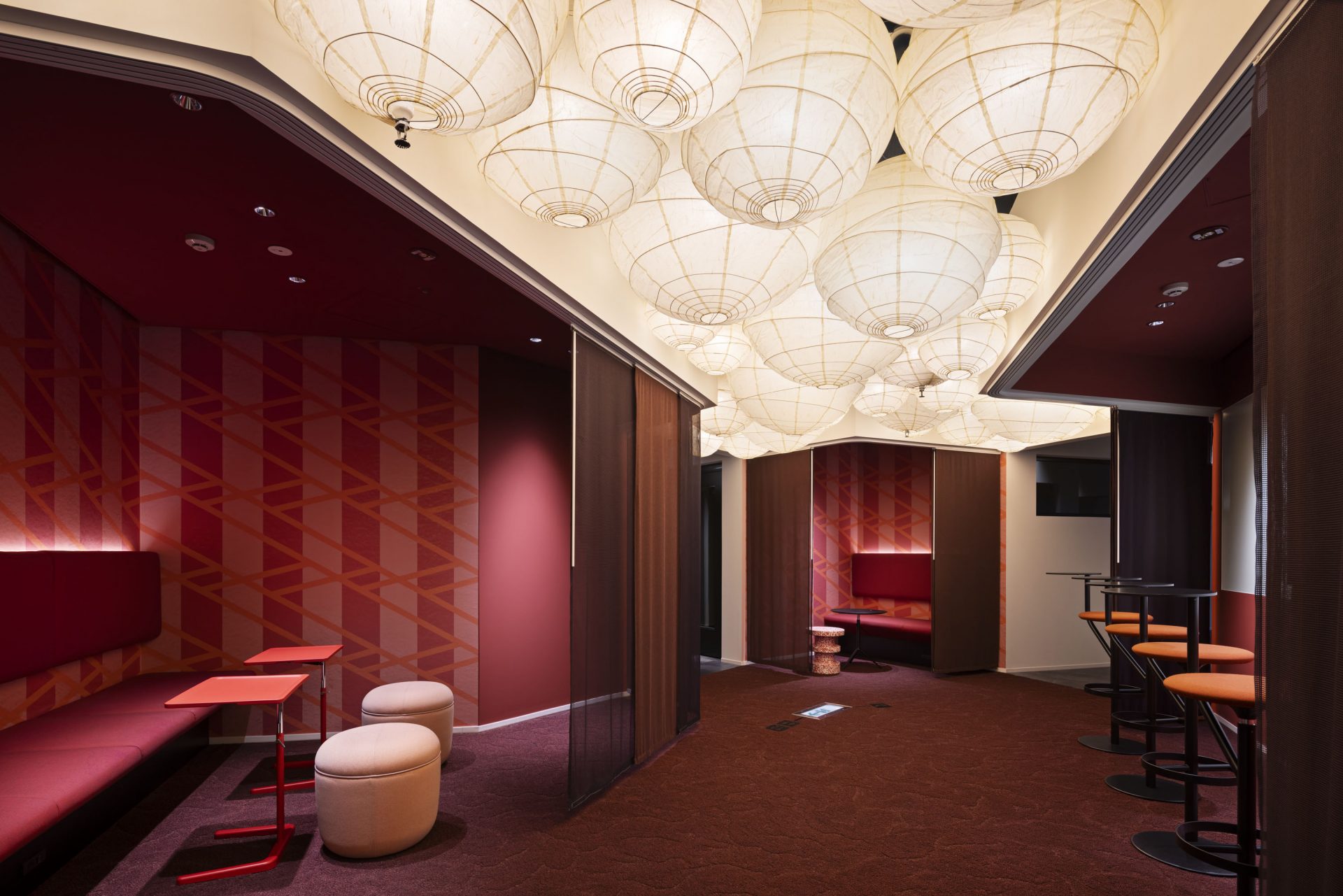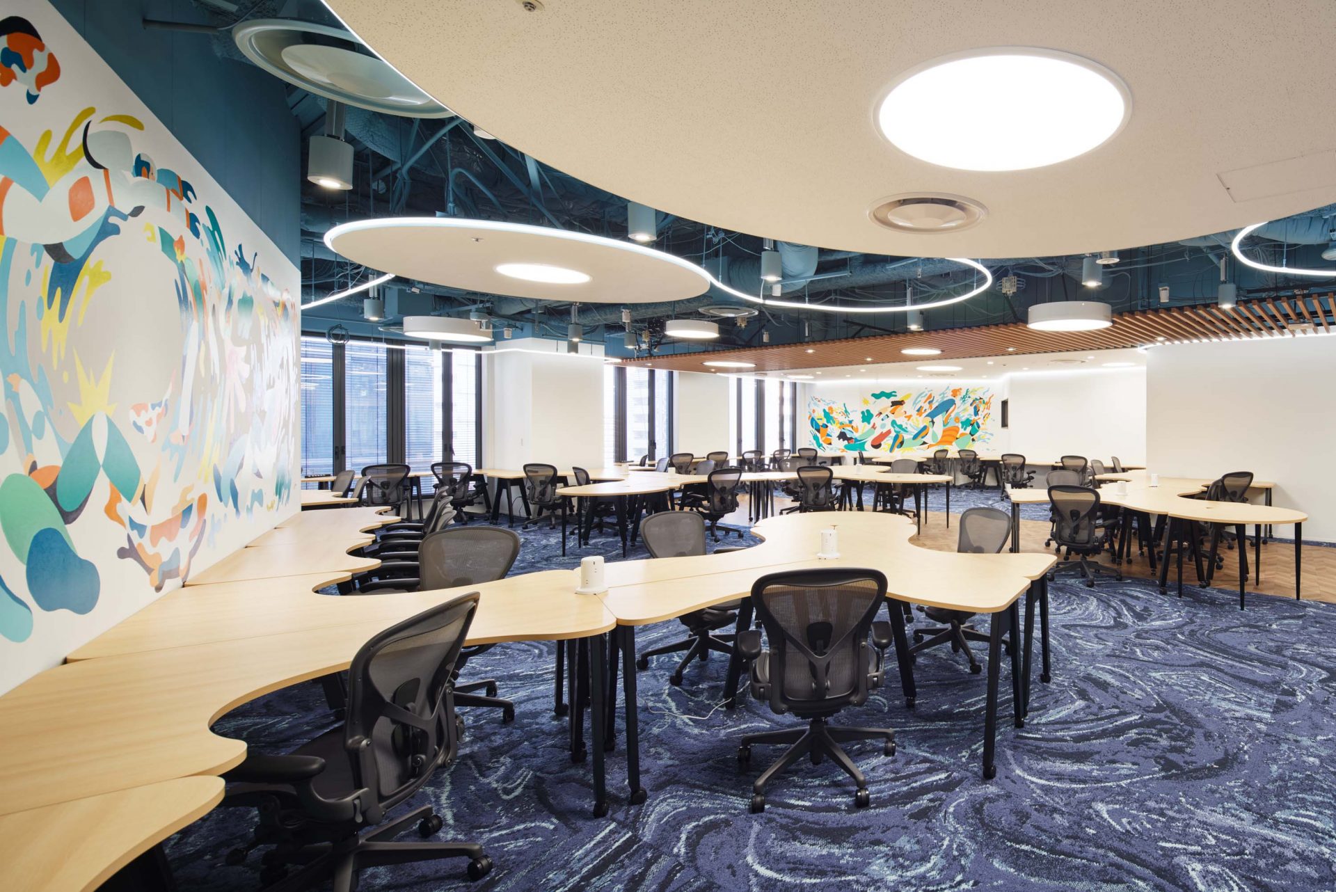 ビルコンセプトである「創造交差点」を体現するエリアのインテリアデザイン。