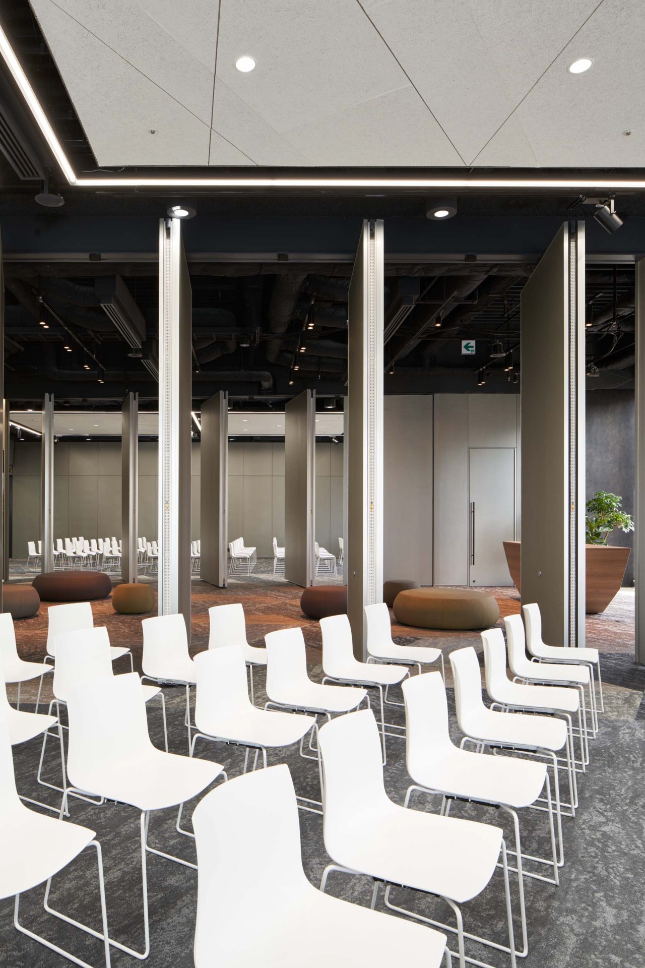 福岡/天神の複合商業ビル「ONE FUKUOKA BLDG.」内に計画された商業エリアとオフィスエリアがつながるビルの中心的フロアで、カンファレンス、カフェ、コワーキングオフィスのインテリアデザインを担当した。クライアントからは開発コンセプトである「創造交差点」に相応く、ビルに集う多様な人々を引き付けることを求められた。オフィスワーカーが行き交うロビーからイベントが垣間見えるカンファレンスや、吹き抜けを介し、イノベーターたちの交流を感じられるコワーキングオフィス、普段は買い物客やオフィスワーカーの為に営業するが、週に一度イノベーターたちのイベントに利用されるカフェ等、老若男女、様々な属性の人たちが集う汽水域のような場とした。